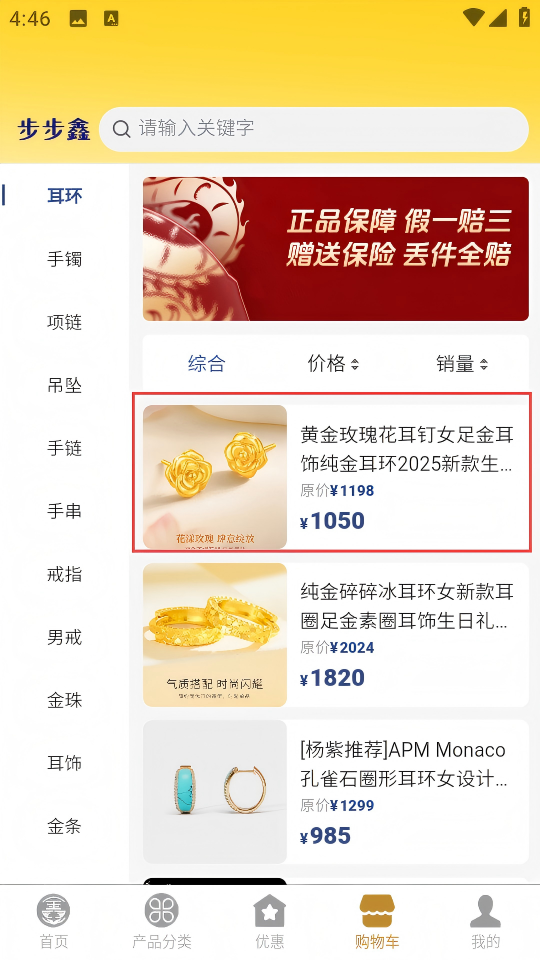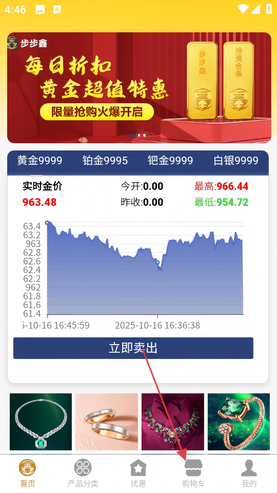 2、选购板块按投资金条首饰配饰庆典礼品分类,支持价格区间纯度等级筛选,购物车可叠加优惠券满减提升性价比。