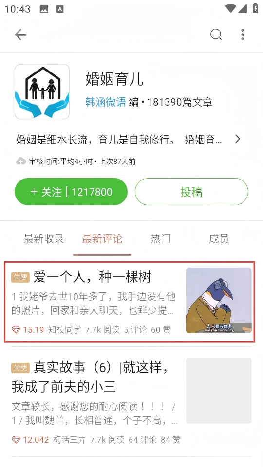 3、在专题详情页面,选择文章《爱一个人,种一棵树》,进入其详情页面。