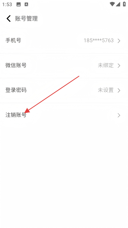 3、在账号管理页面,点击【注销账号】选项,进入注销账号页面。