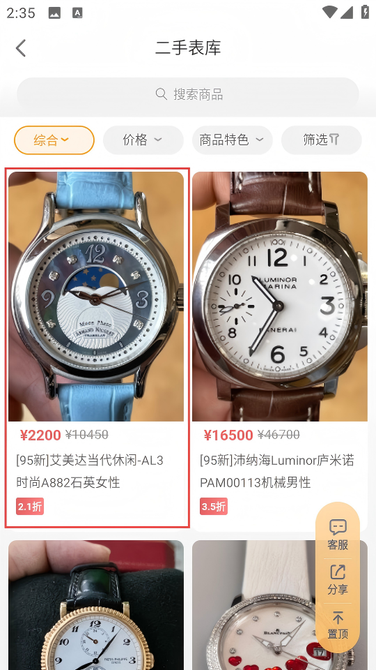 1、覆盖顶级奢华高级轻奢年轻潮牌多类名表,从百达翡丽江诗丹顿到卡西欧华为,满足不同用户与商家的选品需求。
