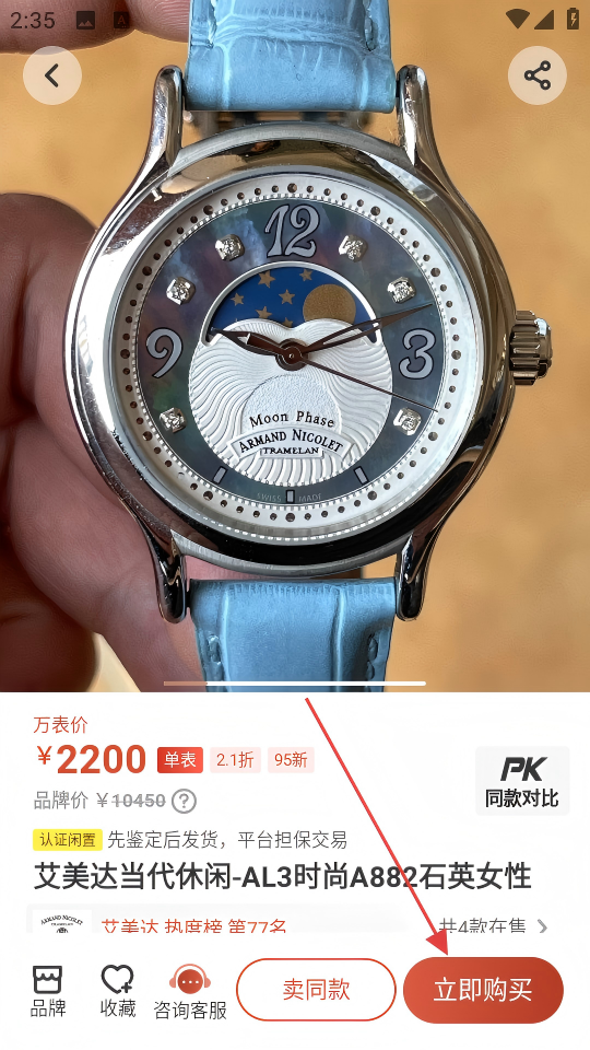 2、在二手表库页面,选择需要购物的手表,进入其详情页面。