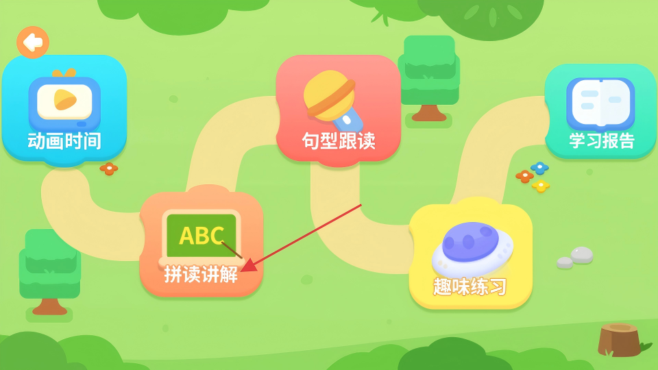 3、在学习模块选择页面,点击【拼读讲解】选项,进入字母拼读动画界面。
