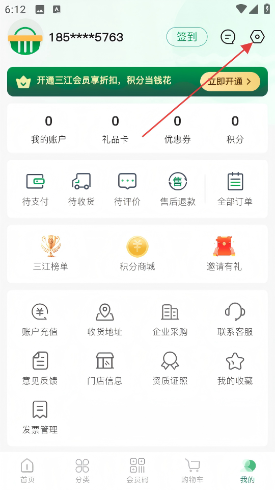 2、在个人中心页面,点击右上角的设置图标,进入设置页面。