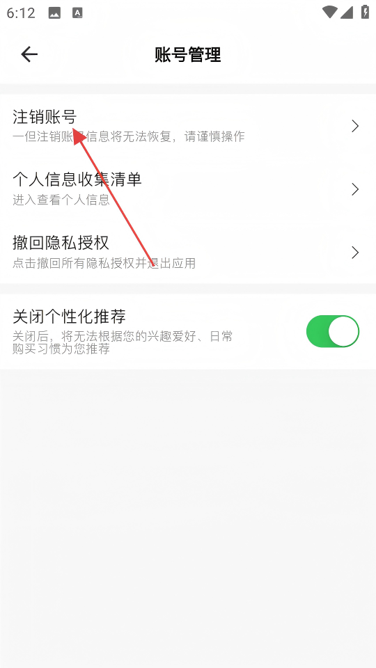4、在账号管理页面,点击【注销账号】选项,按提示完成账号注销操作。