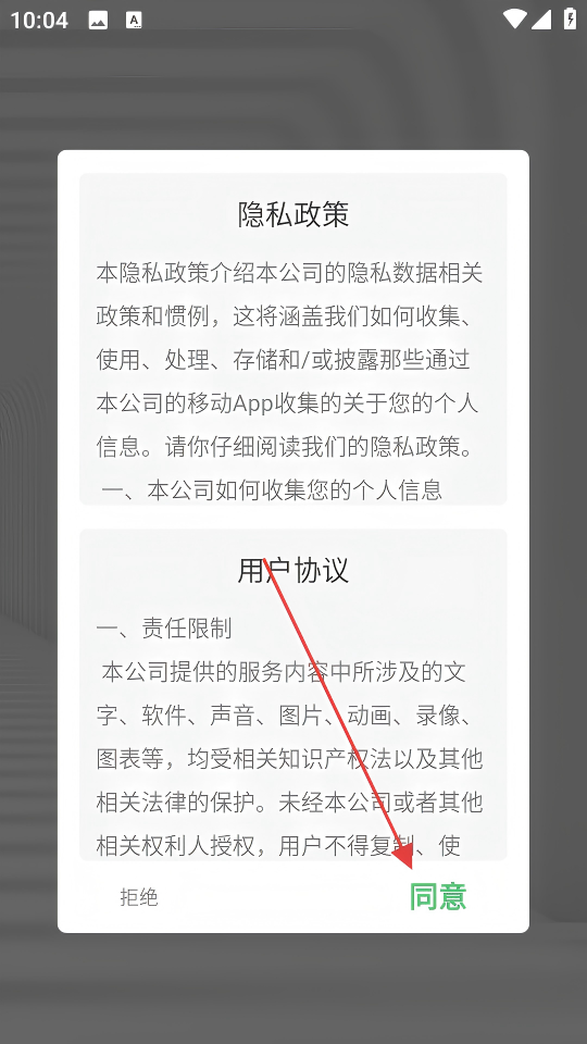 1、在隐私政策与用户协议弹窗中,点击【同意】按钮,进入应用主页面。