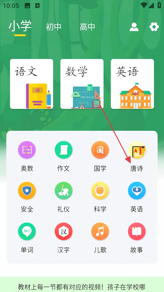 2、在应用主页面,点击【唐诗】选项,进入唐诗学习页面。