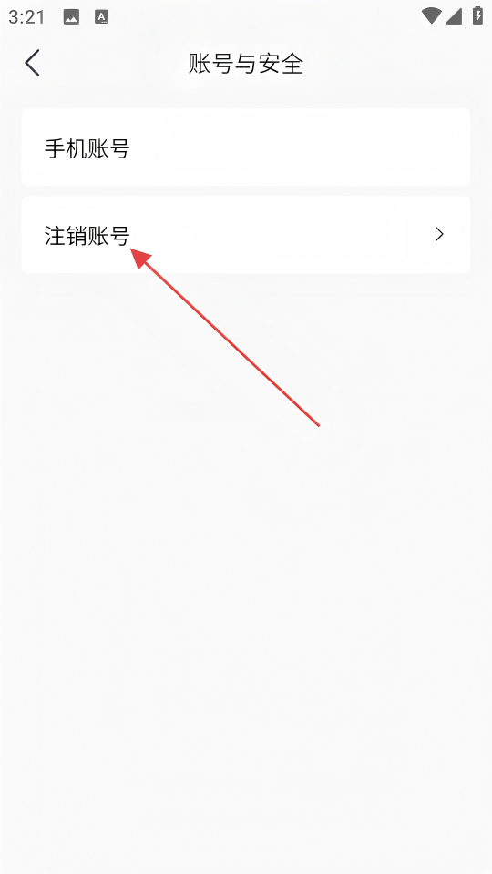 2、在账号与安全页面,点击【注销账号】选项,进入申请注销账号页面。