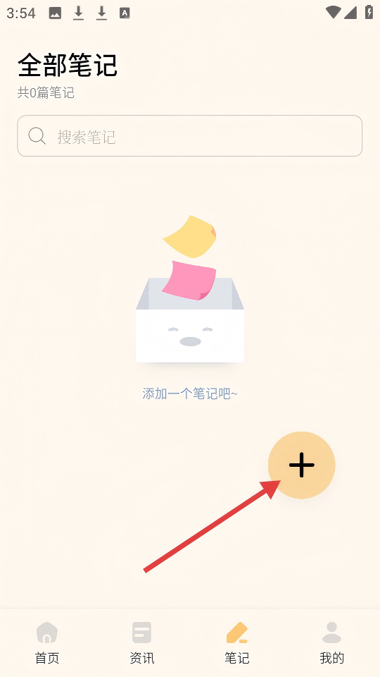 2、在【全部笔记】页面,点击右侧的【+】按钮,可添加新笔记。