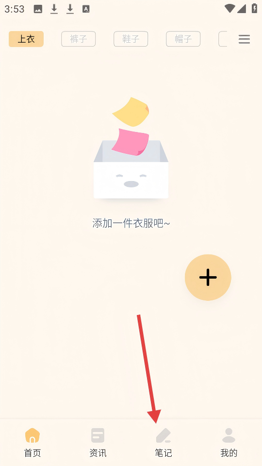 1、点击底部导航栏的【笔记】选项,可进入笔记页面。