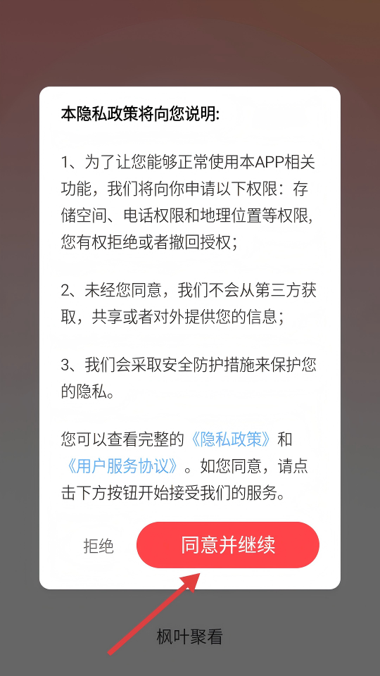 1、弹出隐私政策弹窗时,若同意相关说明,点击【同意并继续】按钮,即可继续使用应用。