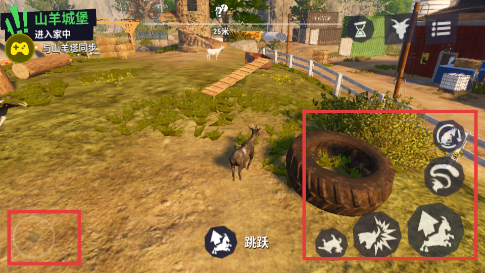 3、使用技能键与其他山羊互动,辅助菜单助力快速完成社交类任务,提升游戏进度。