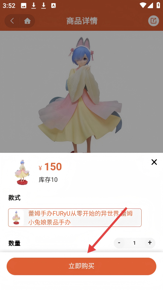 3、在商品购买选项弹窗中,确认款式和数量后,点击【立即购买】按钮。