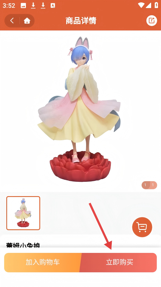 2、在商品详情页,点击右下角【立即购买】按钮。