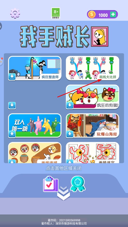 1、在游戏选择界面,点击【画线大比拼】,进入对应关卡。