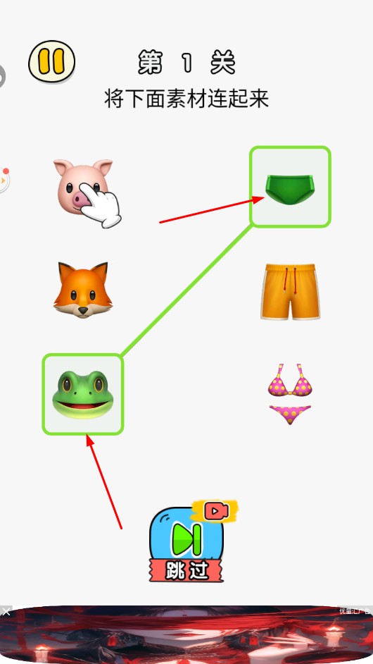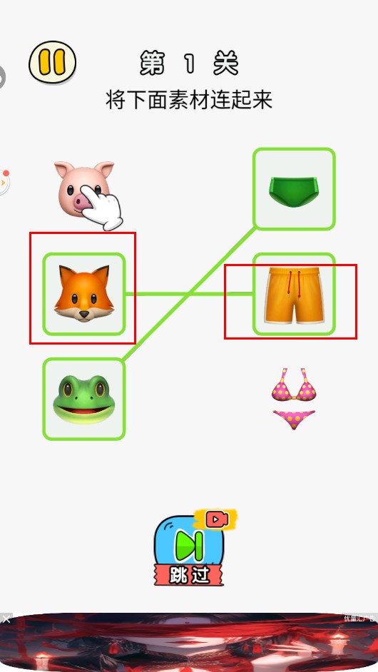 2、根据关卡要求,将左侧动物与右侧服饰进行连线匹配注意要【同色相连】。
