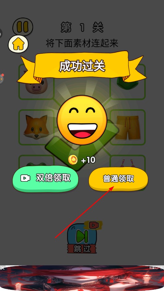 4、关卡通过后,点击【普通领取】按钮,获取奖励。