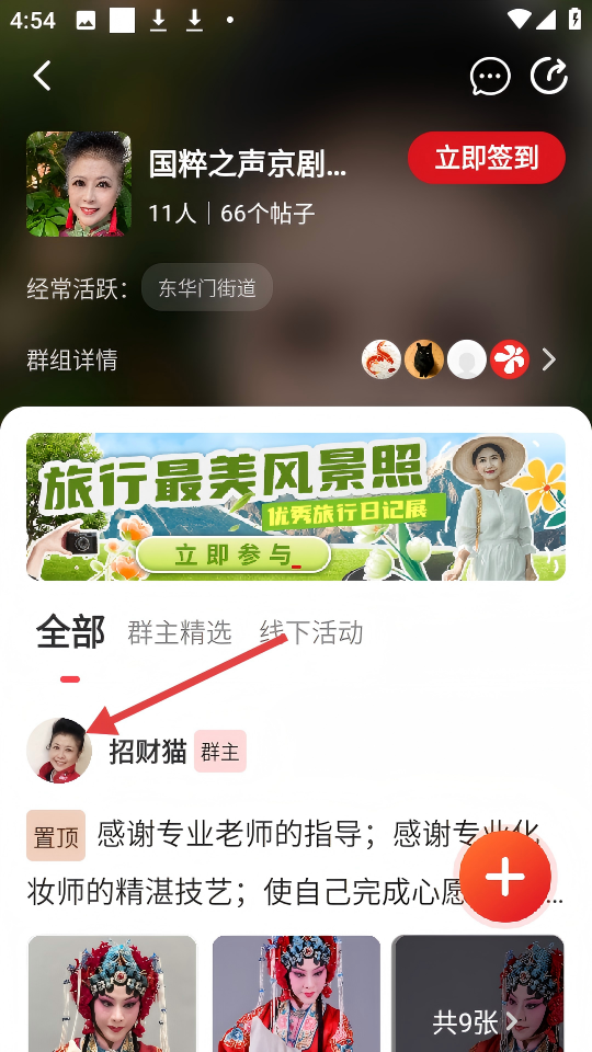3、在【国粹之声京剧…】群组页面,点击头像进入页面。