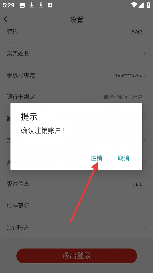 4、在弹出的【提示】框中,点击【注销】按钮。