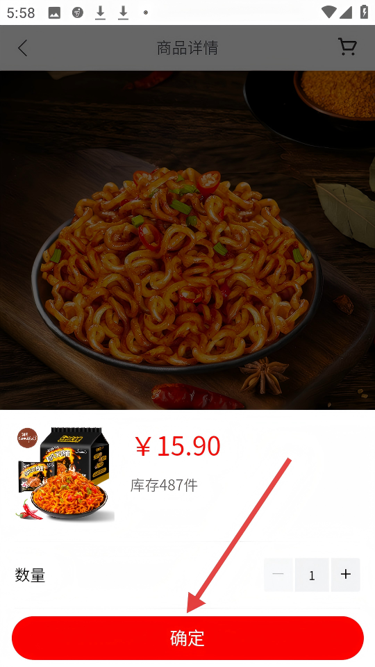 4、在商品详情页,选择数量后点击【确定】按钮。