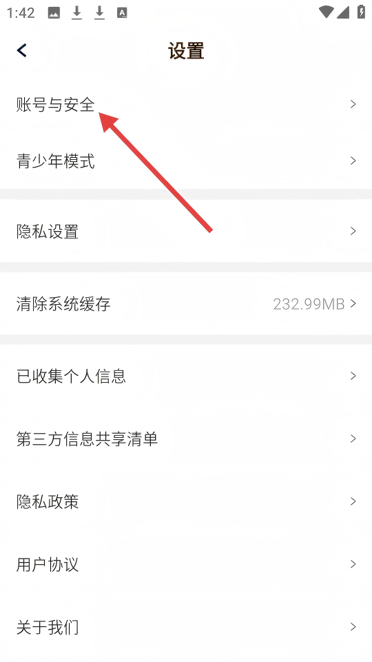 3、在【设置】页面,点击【账户与安全】选项,进入账户与安全页面。