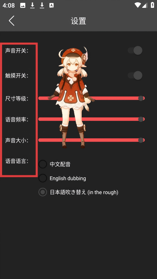 5、提供宠物尺寸调节选项,进入设置模块可选择合适尺寸,让桌宠适配不同手机桌面布局,视觉更协调。