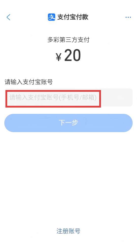 3、在支付宝付款页面,【输入支付宝账号(手机号/邮箱)】后点击【下一步】可继续完成付款。