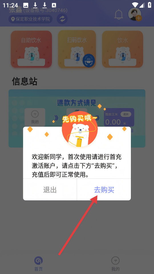1、首次使用时,在弹窗中点击【去购买】可进入充值激活账户的流程。