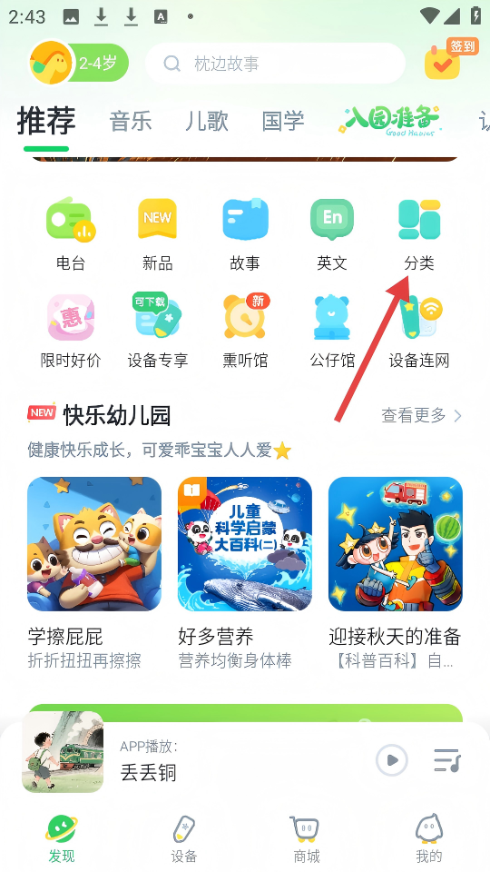 1、在发现页面,点击【分类】,进入全部分类页面。
