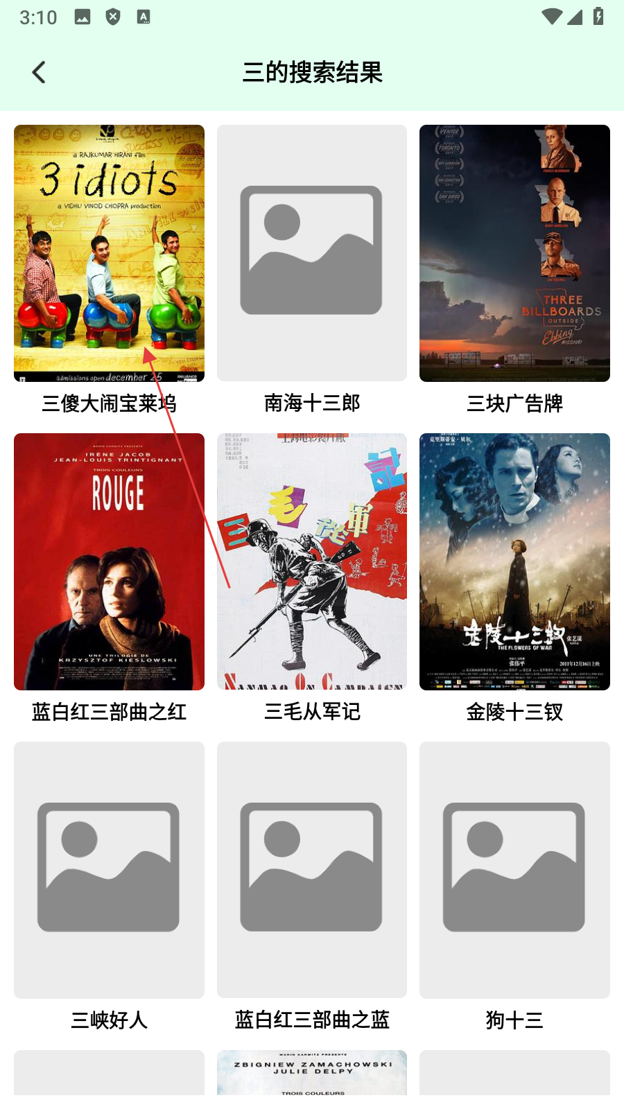 2、在搜索结果页面,选择【目标影片】,进入电影详情页面。