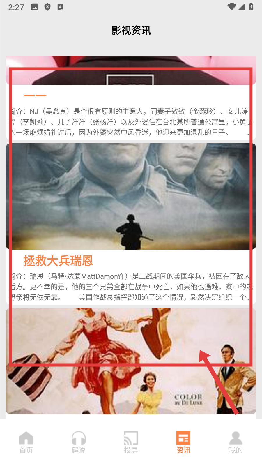 4、进入资讯界面,可以查看【影视资讯】,了解电影简介,获取最新影视动态。