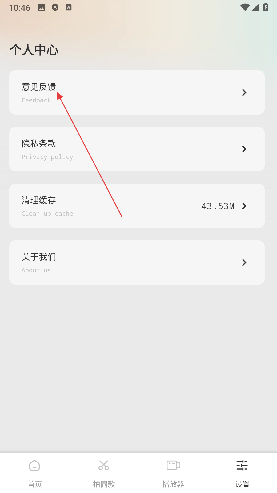 2、在个人中心页面点击【意见反馈】,进入意见反馈页面。