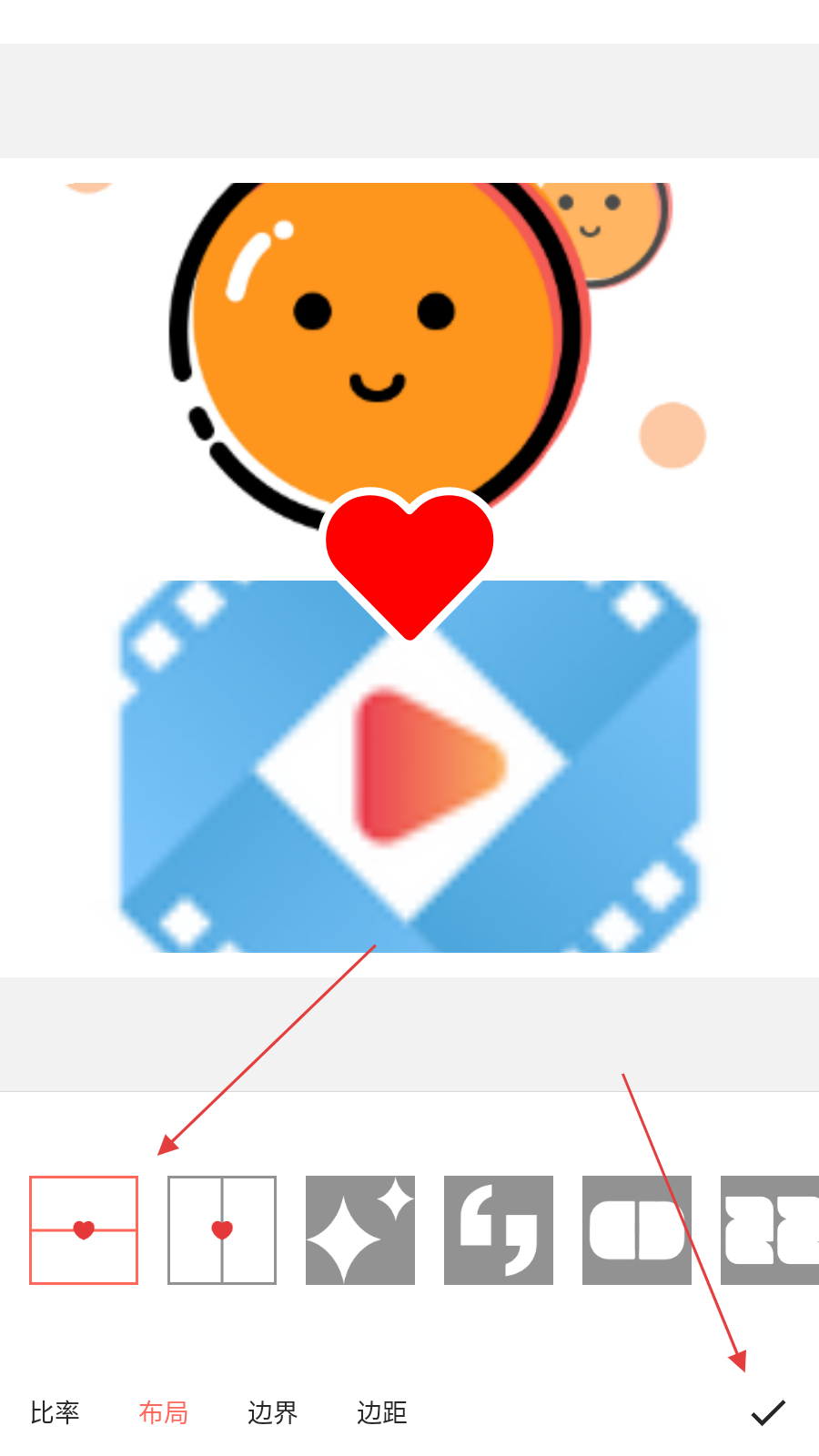 3、在拼图编辑页面【选择布局】后点击【对勾】,完成布局设置。