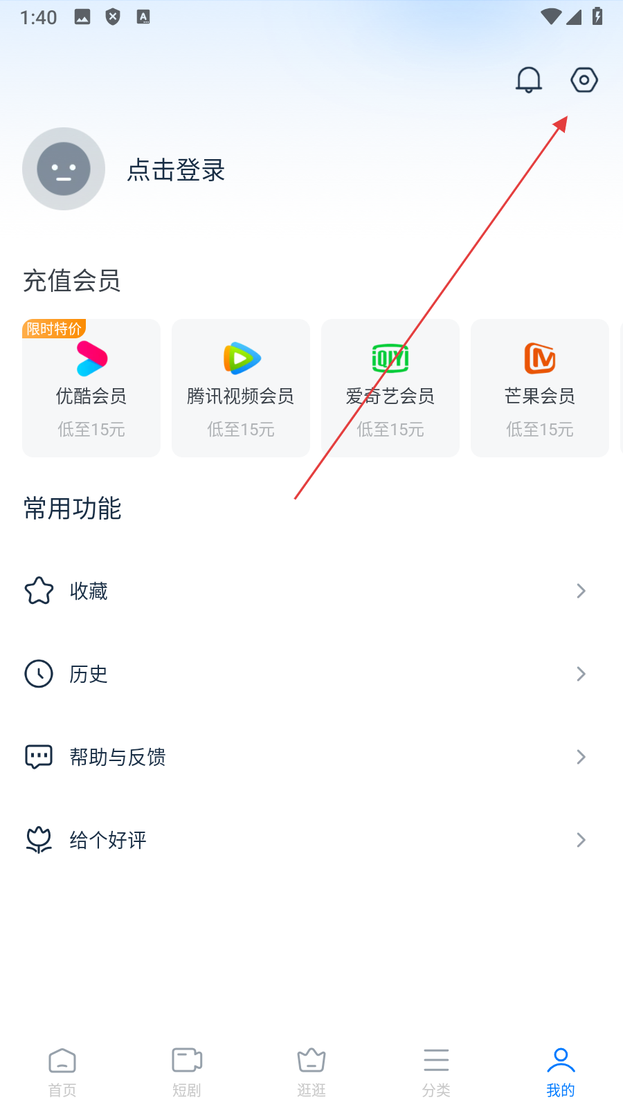 2、在个人中心页面,点击【右上角设置图标】,进入设置页面。