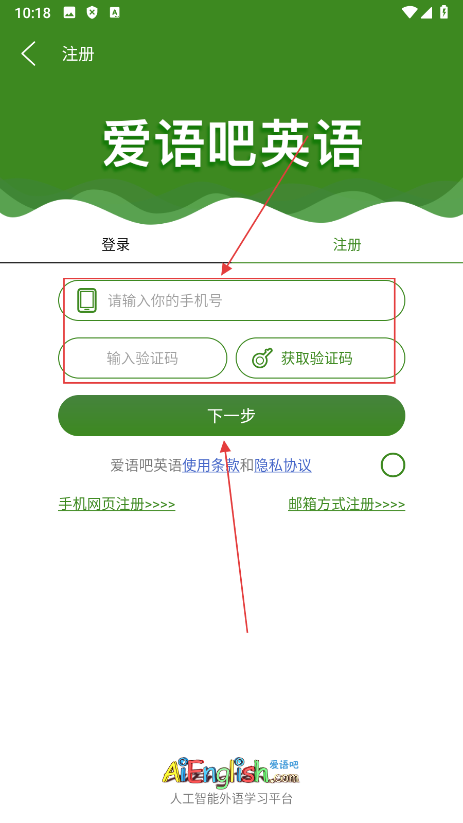 4、在注册页面输入【手机号和验证码】后点击【下一步】,即可进行注册操作。