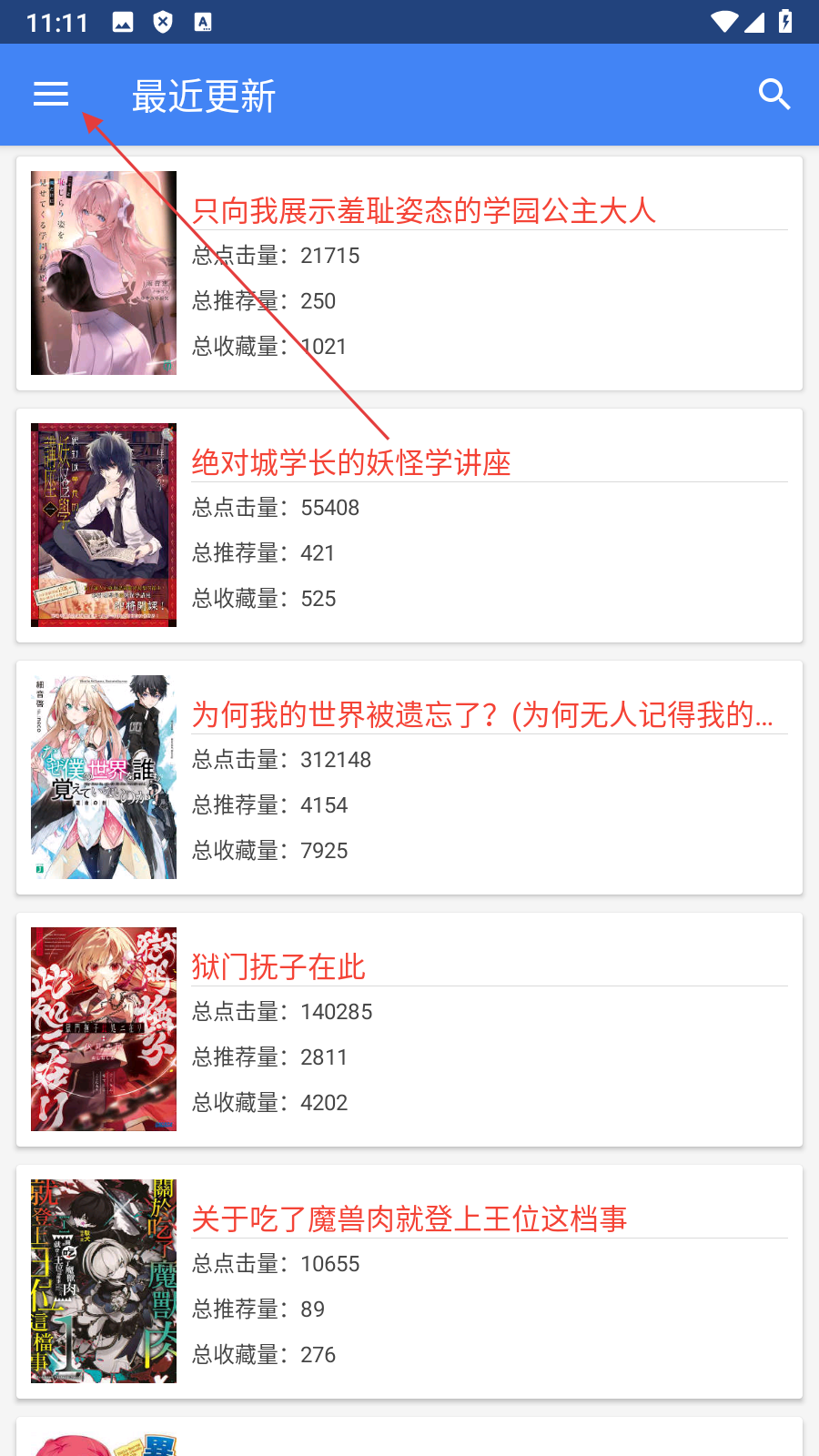 1、点击左上角【菜单图标】,展开侧边菜单。