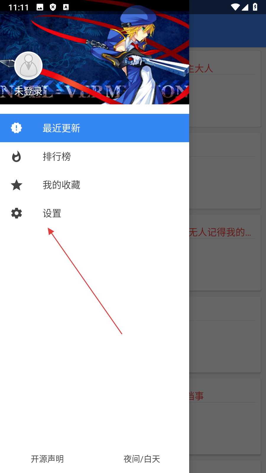 2、在侧边菜单中点击【设置】,进入设置页面。