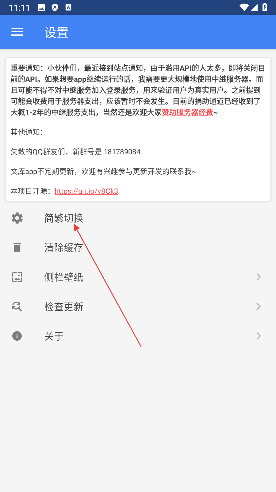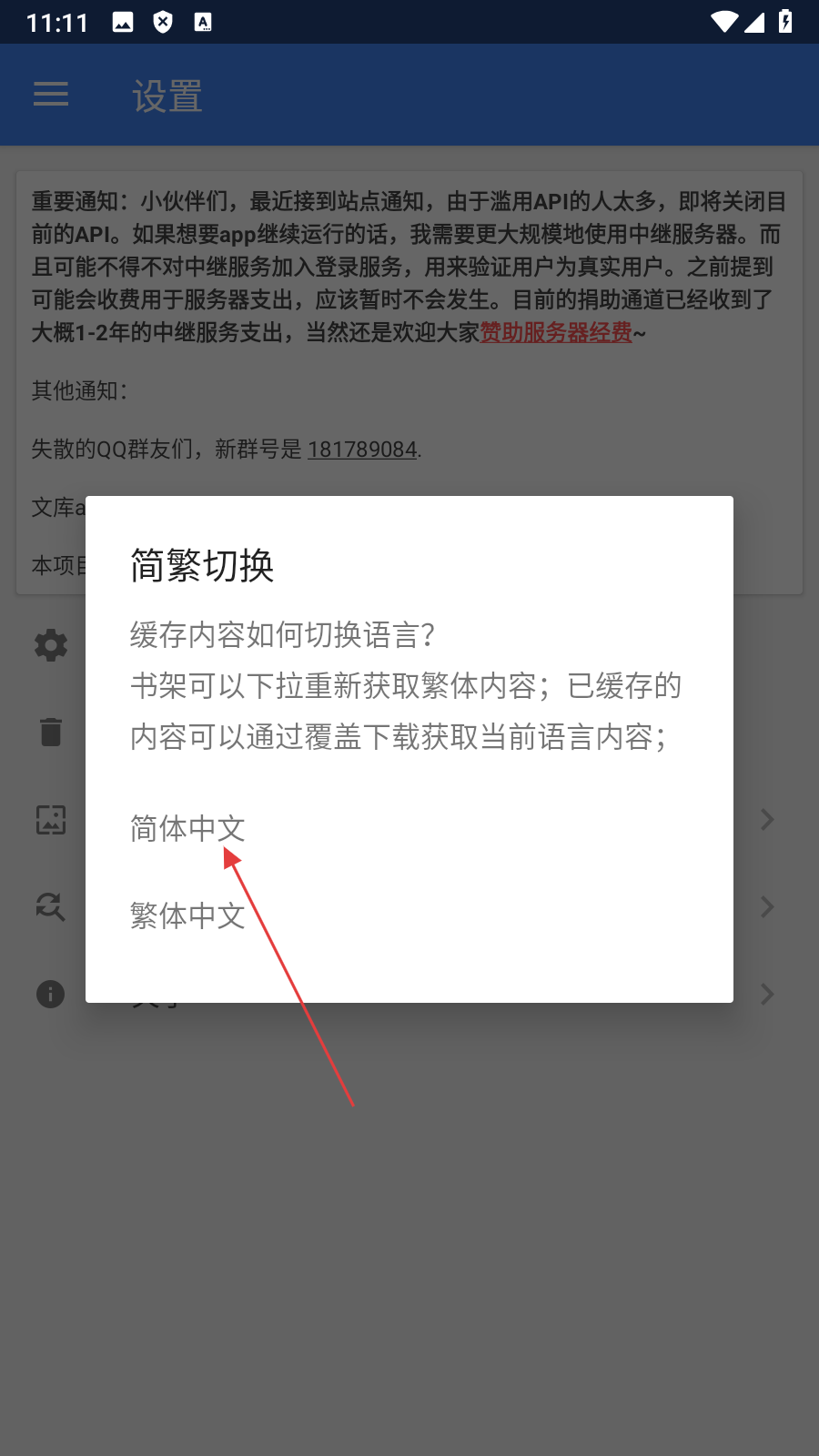 3、在设置页面点击【简繁切换】,弹出简繁切换选项框。
