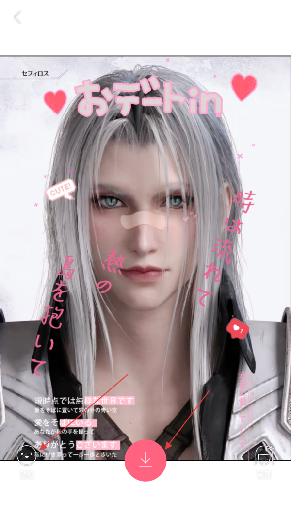 4、在图片编辑界面【添加贴纸、文字等元素】后,点击【下载图标】,即可完成图片编辑操作。