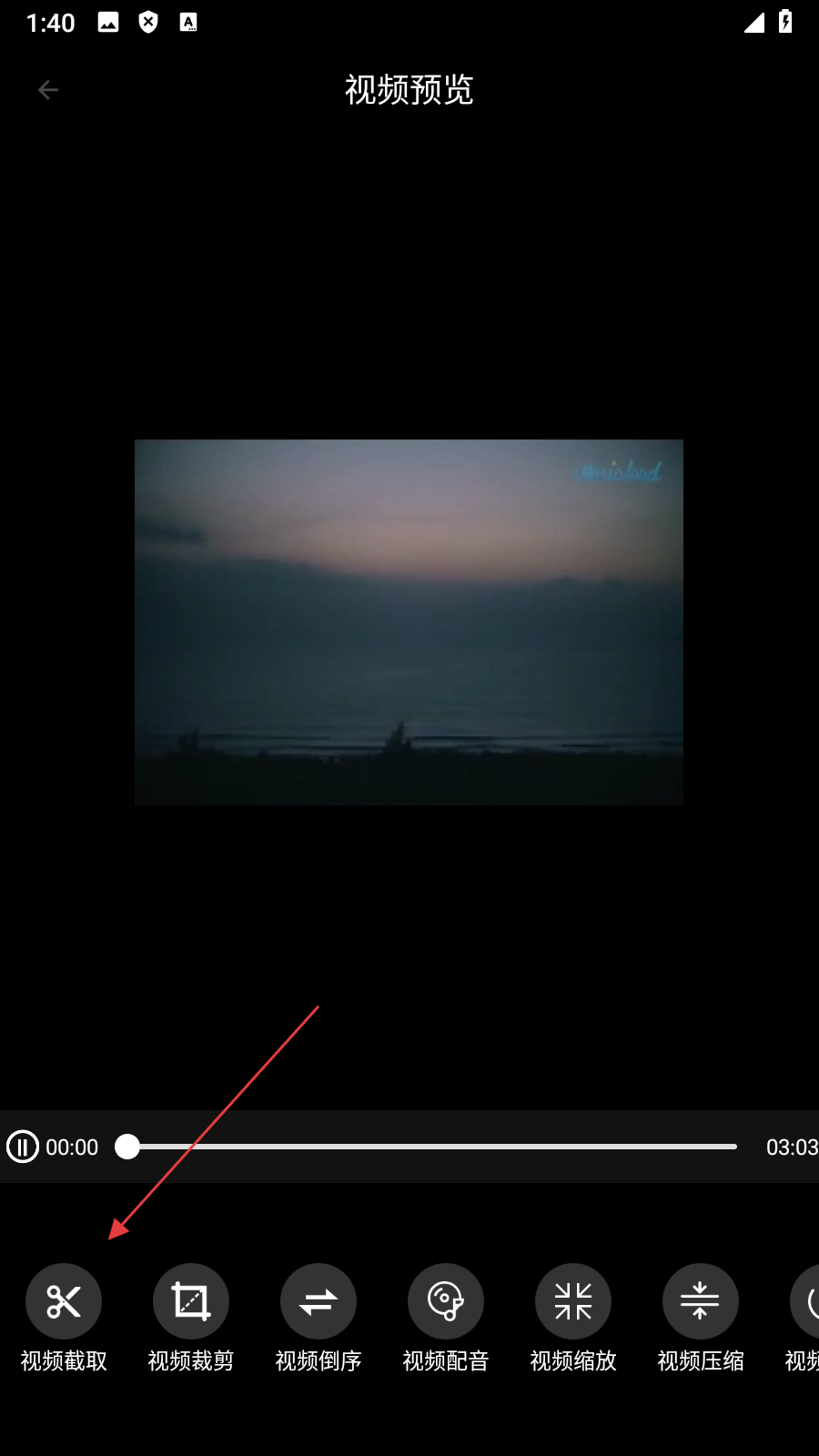 3、在视频预览页面,点击【视频截取】,进入截取设置页面。