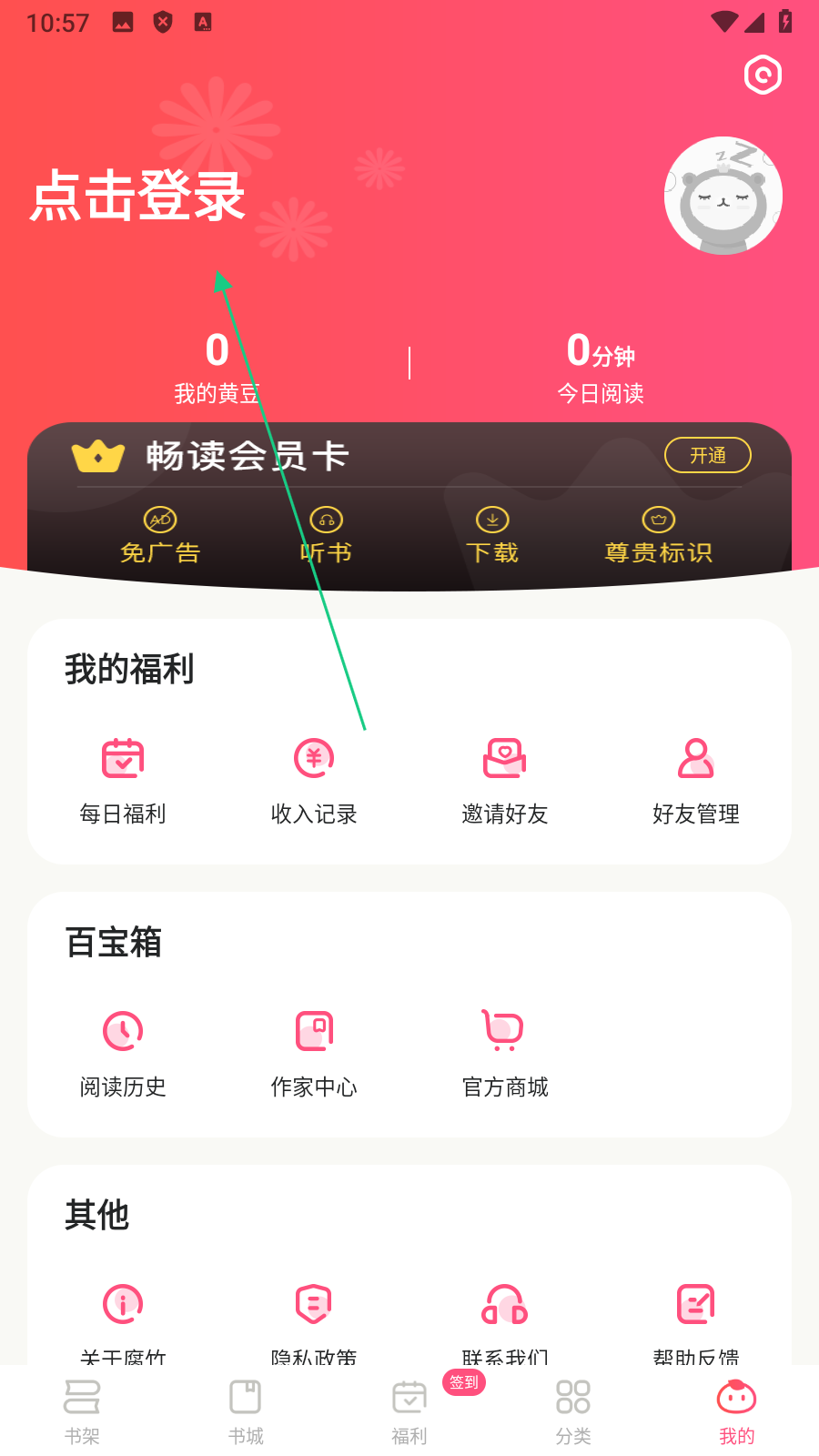 2、在个人页面,点击【点击登录】,进入登录选择页面。