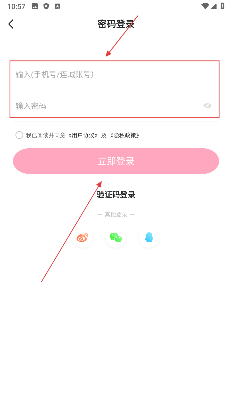 4、在密码登录页面【输入账号、密码】后点击【立即登录】,即可完成登录操作。