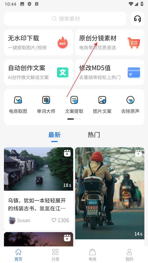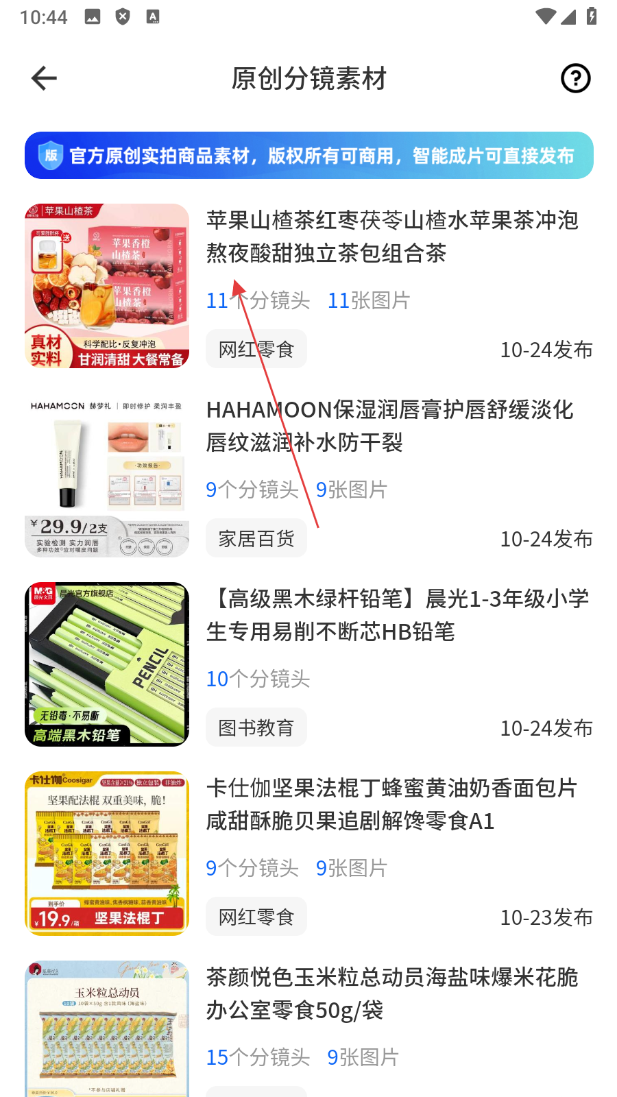 2、在原创分镜素材列表页面【点击目标素材】,进入素材详情页面。