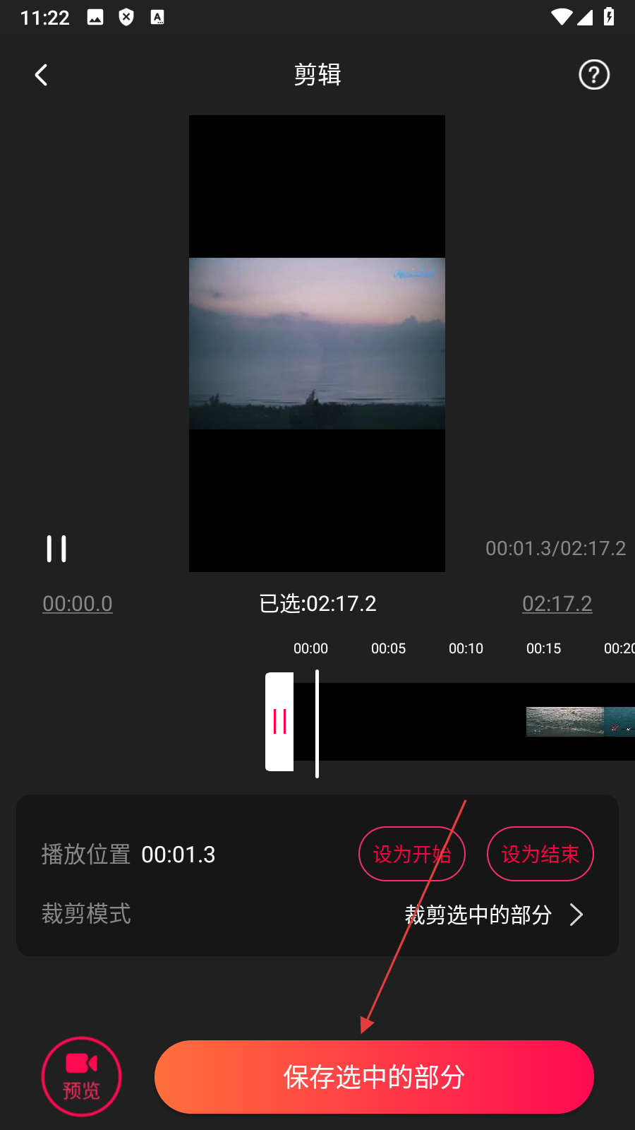 4、在视频裁剪编辑页面【完成编辑】后,点击【保存选中的部分】,即可完成视频裁剪操作。