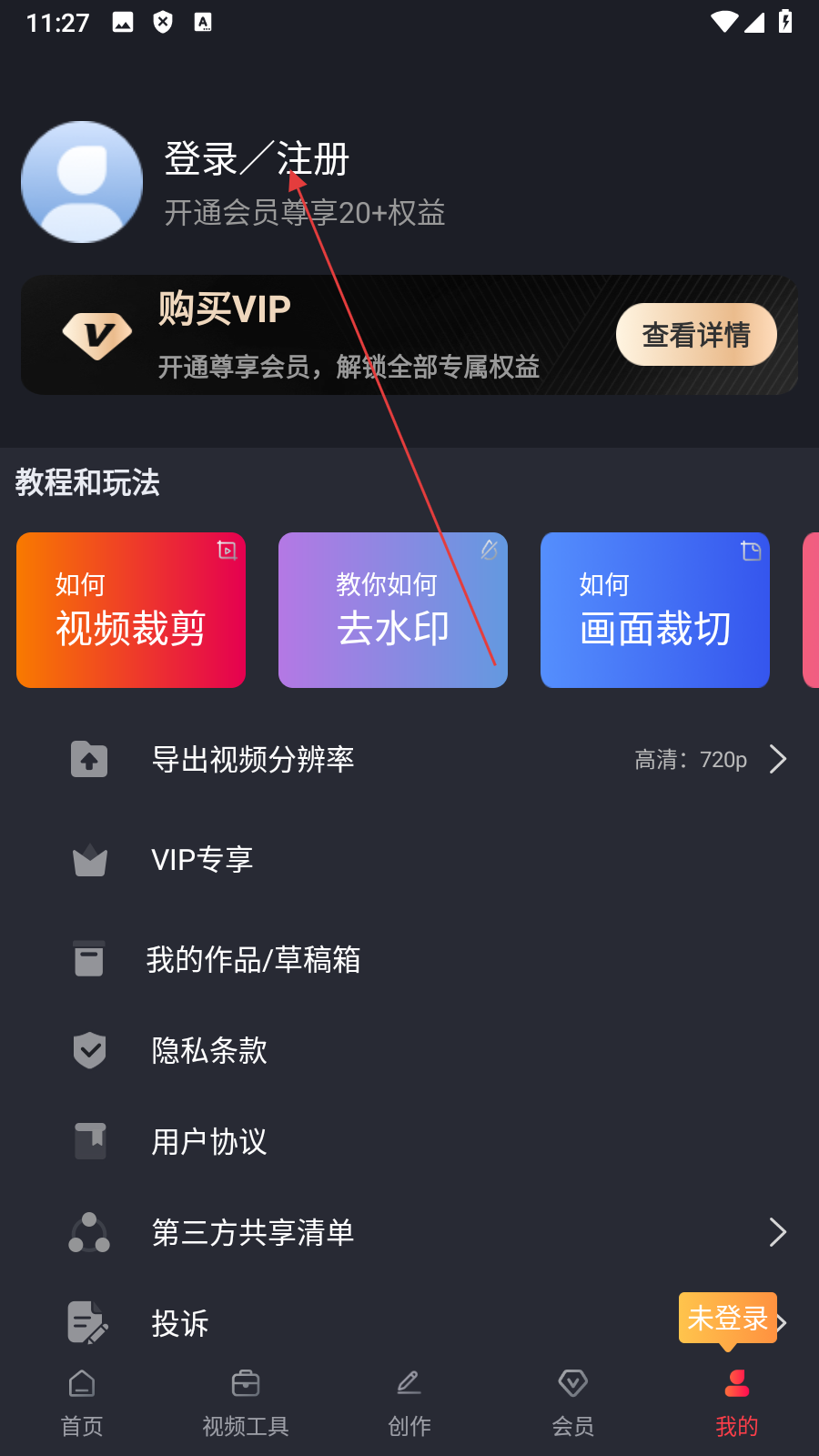 2、在个人页面点击【登录/注册】,进入账号登录选择页面。