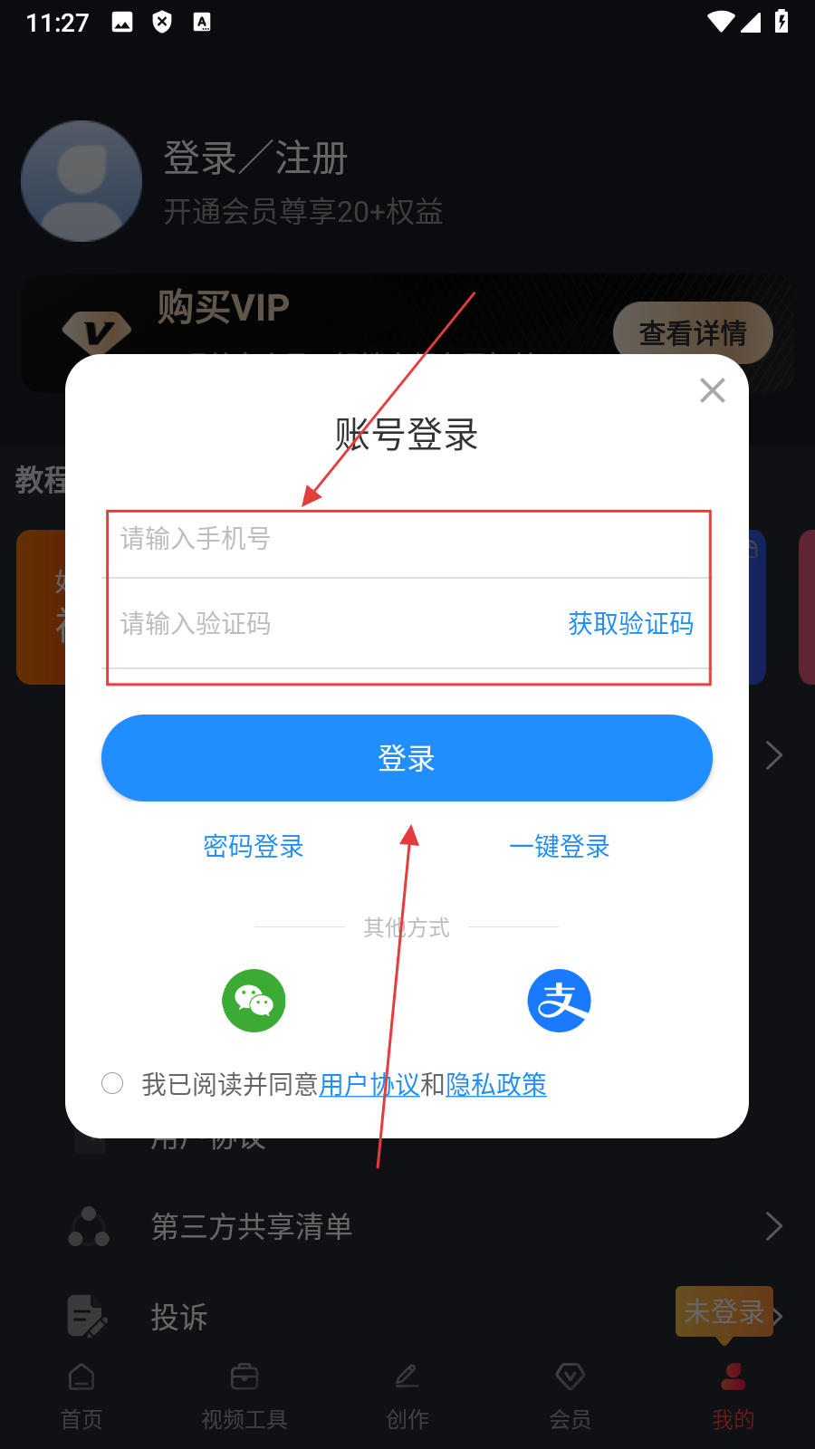 4、在验证码登录信息填写页面,输入【手机号、验证码】后点击【登录】,即可完成登录操作。