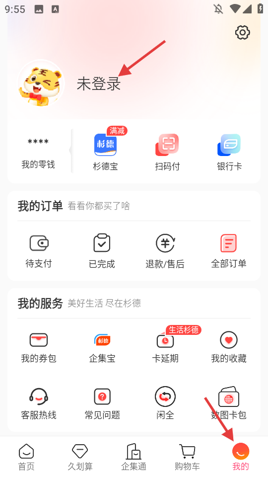 1、打开APP,点击底部“我的”进入个人页面,再点击“未登录”区域。