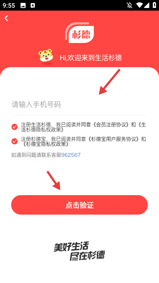 3、在注册页输入手机号码,勾选相关协议后点击“点击验证”。
