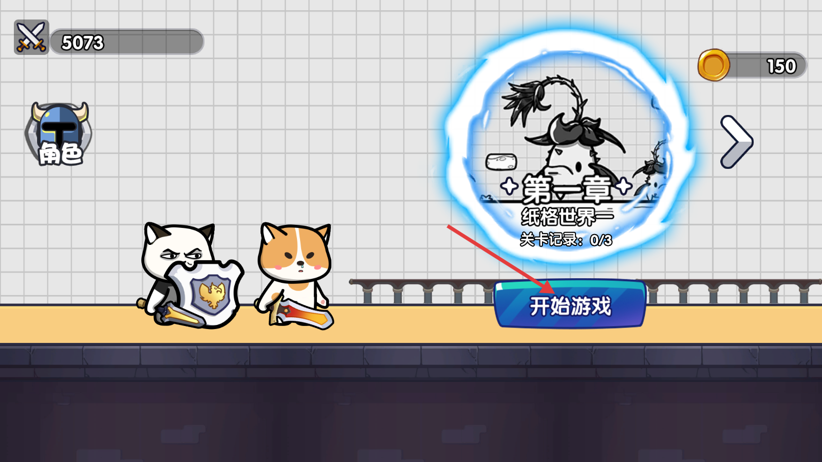 1、点击【开始游戏】按钮,进入第一章【纸格世界】关卡。