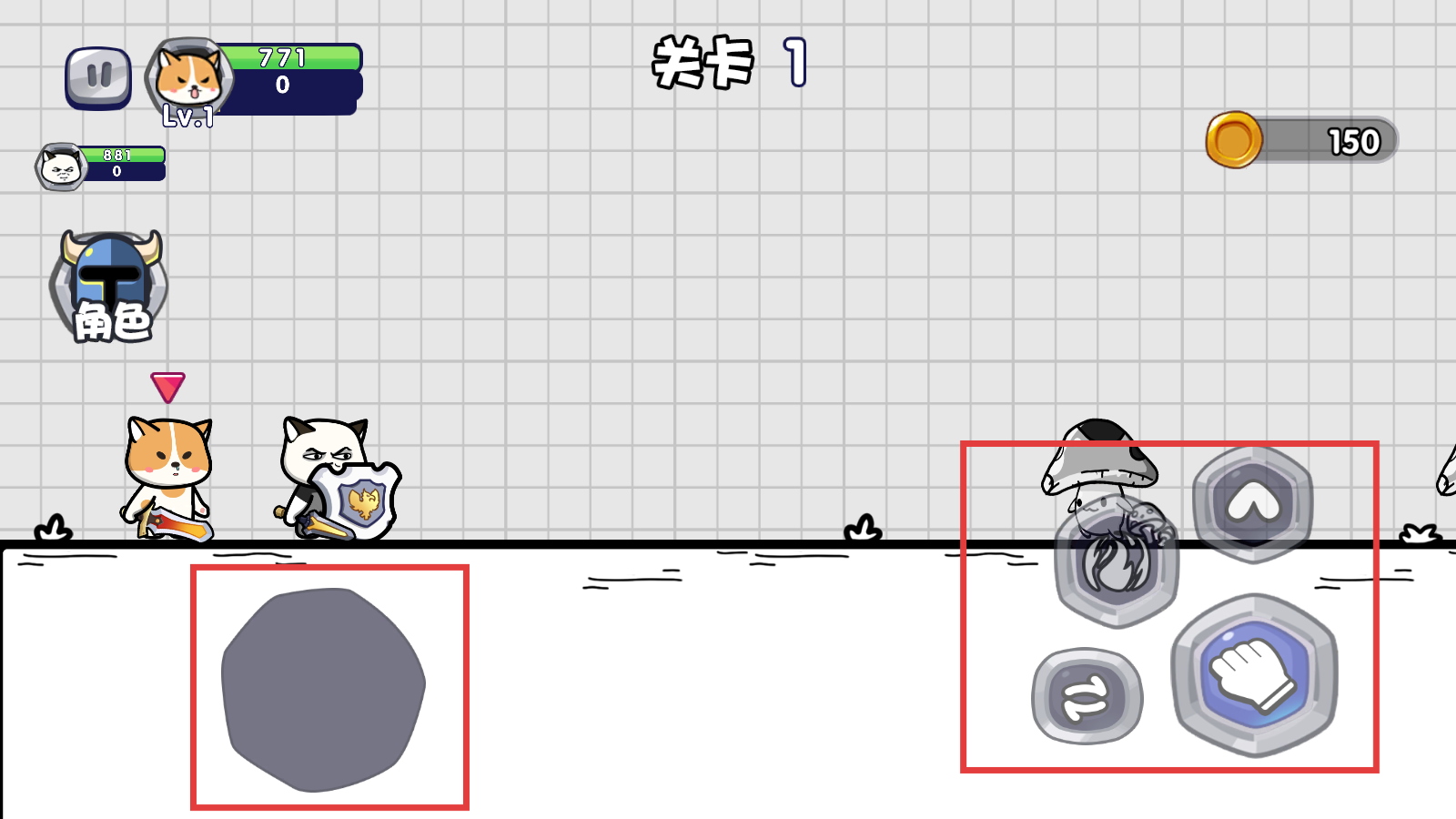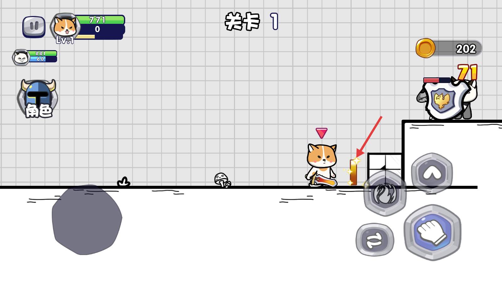 2、在关卡中,利用右侧的操作按钮,控制角色移动、攻击等,攻击右侧蘑菇。