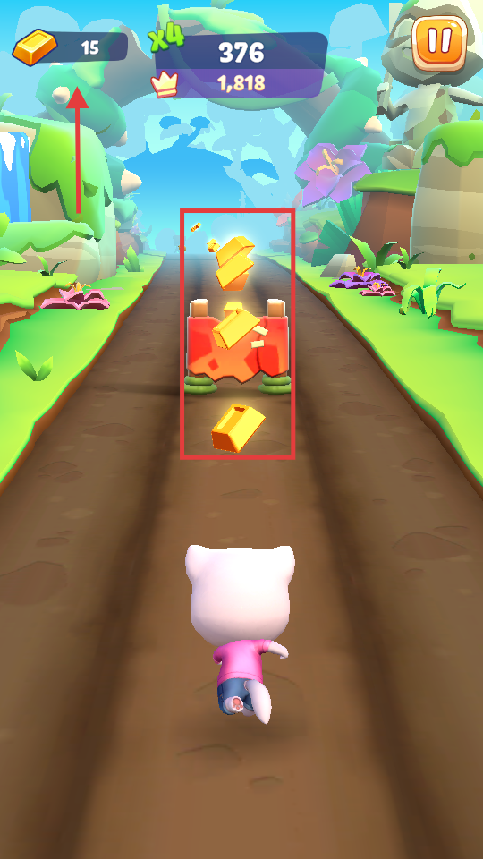 2、跑酷时遇到道路上的金币堆要尽量收集能快速增加得分和金币数量。